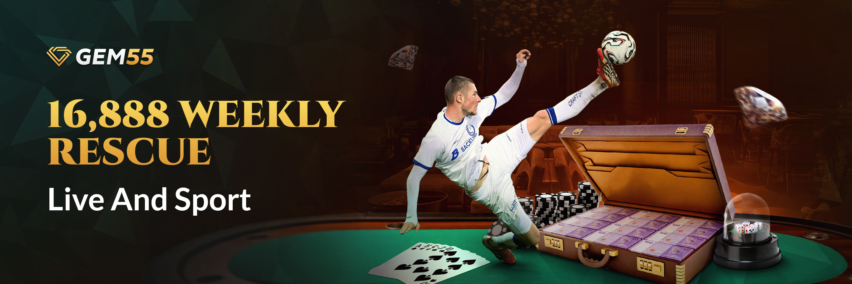 Receive unlimited rebate bonus up to 0.9% from your bets with GEM55.